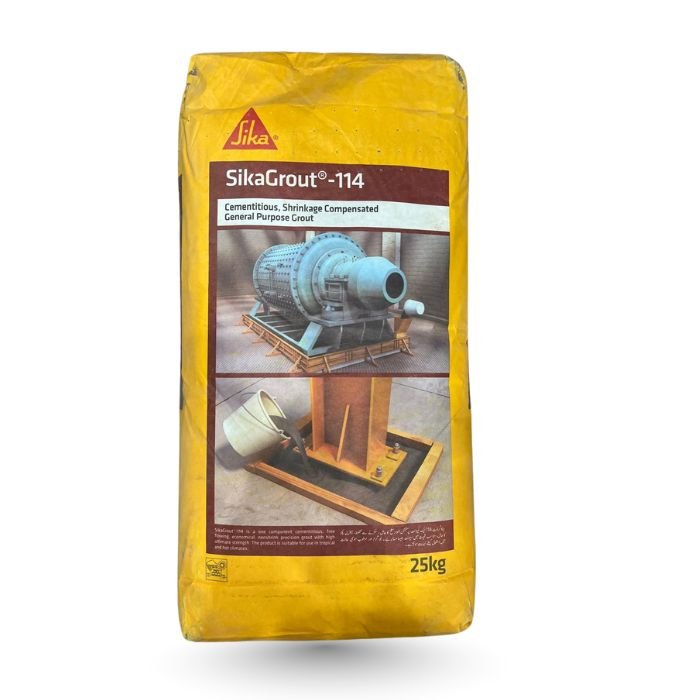 This grout is ideal for grouting under heavy machinery, structural columns, precast elements, anchor bolts, bridge bearings, and industrial equipment where high load-bearing capacity and long-term stability are essential. SIKA GROUT®-114 is easy to mix and place, flows smoothly into confined spaces, and cures to a dense, durable finish.